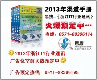 风风雨雨的一年又将接近尾声,伴着岁末年初,新一期的2013易搜-《浙江IT行业通讯录》全新修订版即将登场,预计在2013年1月底即会与浙江及华东地区IT商家朋友们见面了!